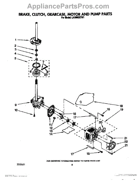 Parts for Whirlpool LA5600XTF1: 07 - Brake, Clutch, Gearcase, Motor And Pump Parts