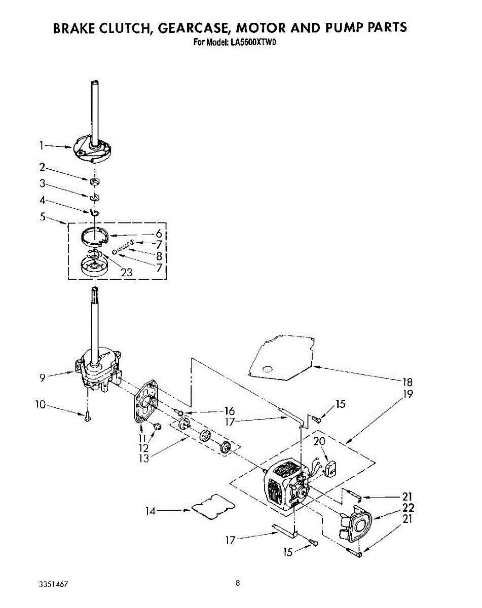 Parts for Whirlpool LA5600XTN0: 07 - Brake, Clutch, Gearcase, Motor And Pump Parts