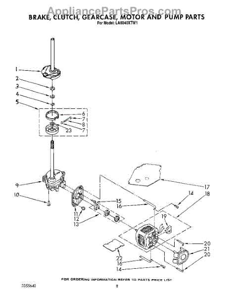 Parts for Whirlpool LA6040XTF1: 07 - Brake, Clutch, Gearcase, Motor And Pump Parts