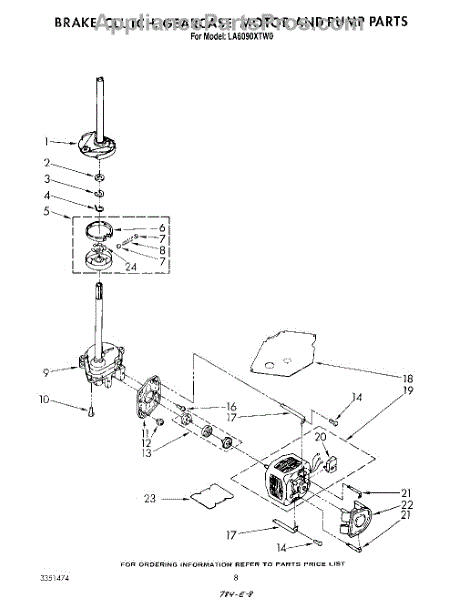 Parts for Whirlpool LA6090XTW0: 07 - Brake, Clutch, Gearcase, Motor And Pump Parts
