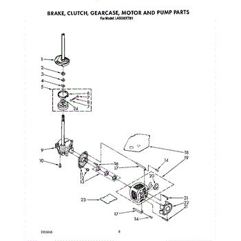Parts for Whirlpool LA6098XTM1: 07 - Brake, Clutch, Gearcase, Motor And Pump Parts