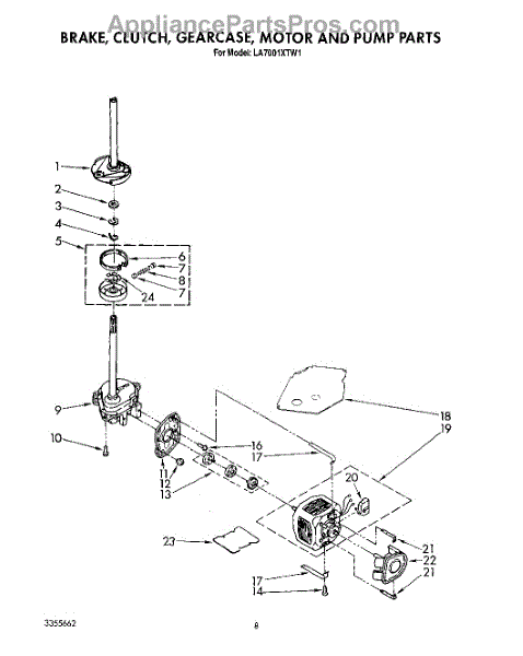 Parts for Whirlpool LA7001XTG1: 07 - Brake, Clutch, Gearcase, Motor And Pump Parts