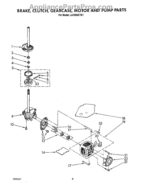 Parts for Whirlpool LA7088XTG1: 07 - Brake, Clutch, Gearcase, Motor And Pump Parts