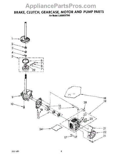 Parts for Whirlpool LA8800XTG0: 07 - Brake, Clutch, Gearcase, Motor And Pump Parts