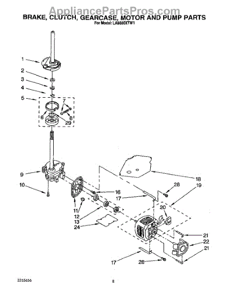 Parts for Whirlpool LA8800XTG1: 07 - Brake, Clutch, Gearcase, Motor And Pump Parts