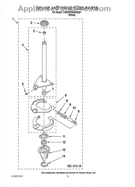 Parts for Whirlpool CAWSS16445WQ0: 07 - Brake And Drive Tube Parts