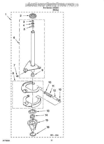 Parts for Whirlpool IJ43001: 07 - Brake And Drive Tube Parts
