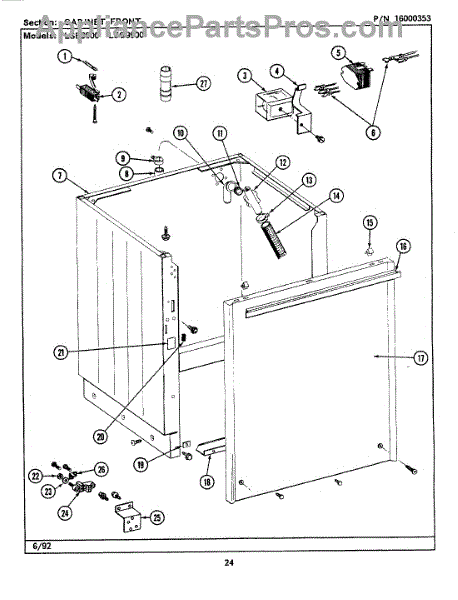 Factory fastener screw secures panels, brackets, and trim inside appliances. Replace missing, stripped, or damaged screws to restore tight fit.