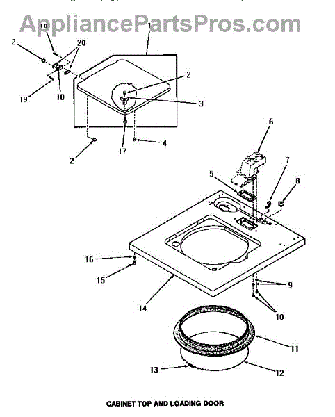 Parts for Amana FA0650: 07 - Cabinet Top & Loading Door Parts