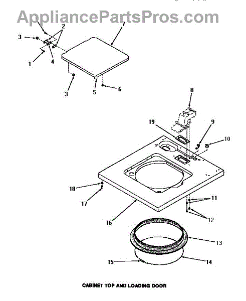 Parts for Amana FA3690: 07 - Cabinet Top & Loading Door Parts