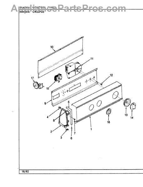 Parts for Crosley CW20P8WS: 07 - Control Panel (Cw20p8xs)(Rev. A-E) Parts