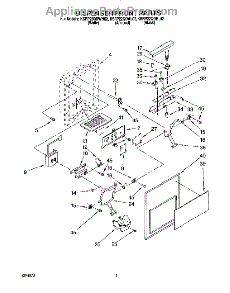 Parts for Kitchenaid KSRP22QDBL02: 07 - Dispenser Front Parts