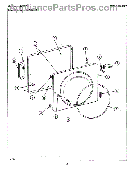This factory screw secures appliance components to their mounting points. Replace missing, worn, or stripped hardware to restore a tight fit, proper alignment, and quieter operation across the affected assembly.