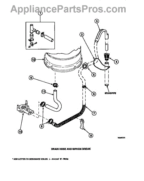 Parts for Amana LW8201W2 / PLW8201W2 A: 07 - Drain Hose And Siphon Break Parts