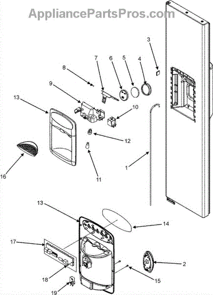 The Ice Chute Door is an OEM replacement part for Whirlpool side-by-side refrigerators. It provides access to the dedicated ice and water storage and dispensing compartment located on the refrigerator door.