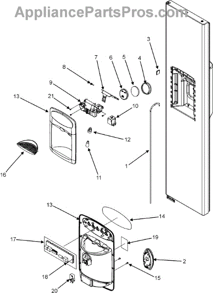 The Dispenser Overlay is an OEM part for Whirlpool refrigerators. It is a component that covers and protects the control panel and buttons of the dispenser on the fridge. It provides a protective barrier against dust, moisture, and every day wear and tear, helping to maintain the appearance and functionality of the dispenser.