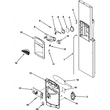 The ice chute hinge mounts in the dispenser and lets the ice door pivot open and closed. Replacing a worn hinge restores smooth movement and a tighter seal, helping prevent frost, moisture, and warm-air leaks at the dispenser.