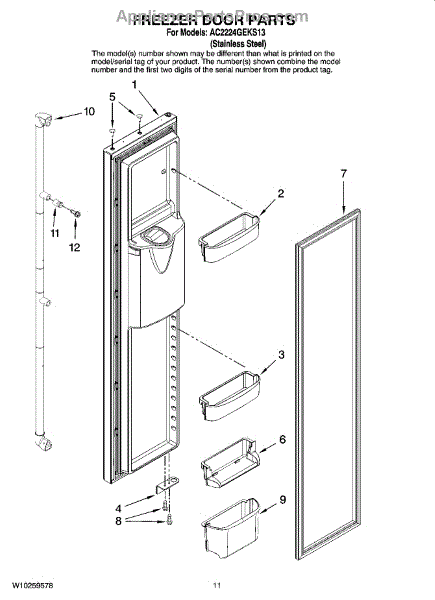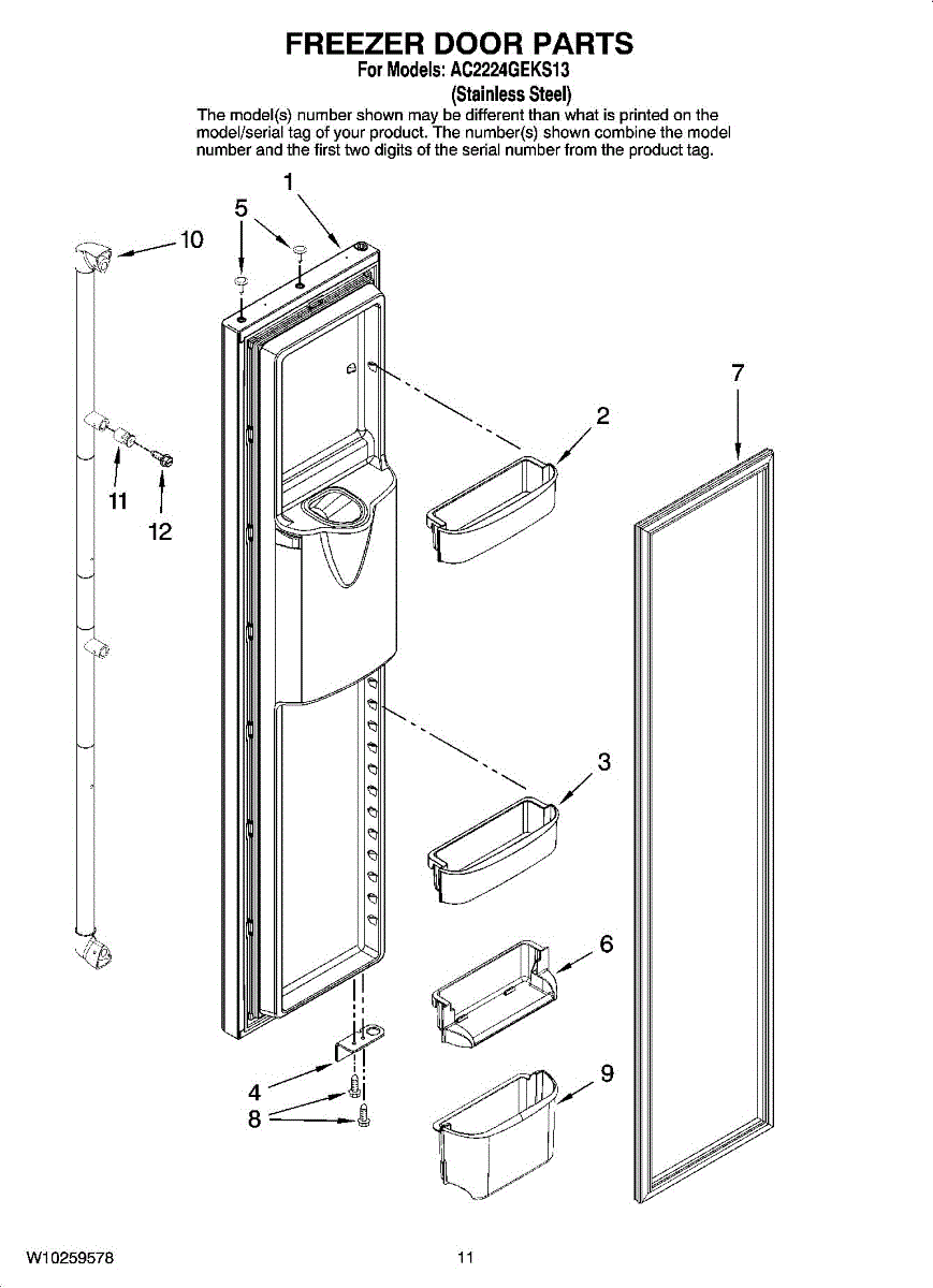 Parts for Maytag AC2224GEKS13: 07 - Freezer Door Parts