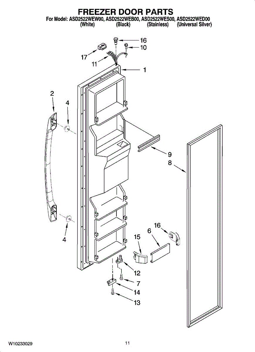 Parts for Maytag ASD2522WES00: 07 - Freezer Door Parts