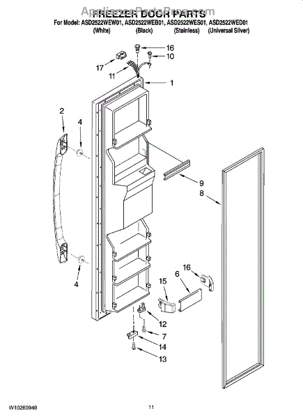 The Freezer Door Gasket is an OEM replacement part for Whirlpool refrigerators. It creates a tight insulating seal around the perimeter of the freezer door opening. The gasket helps maintain consistent sub-freezing temperatures inside by preventing cold air loss. Causes relate to natural compression fatigue over time, cracks developing with use, or accidental slicing/tears from sharp edges within the freezer. Symptoms of a compromised gasket include: