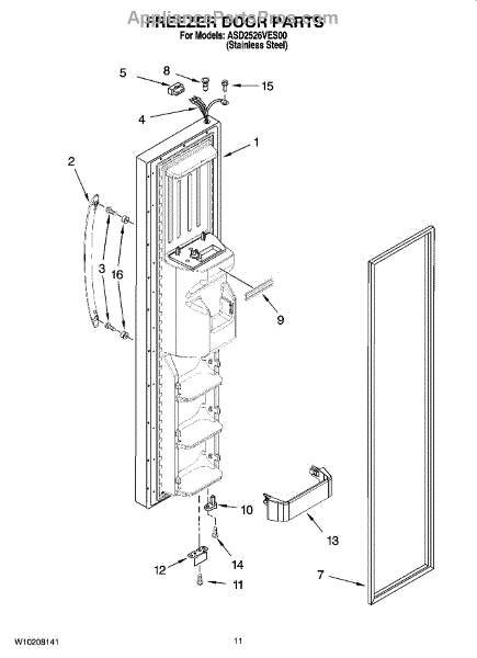 The Door Gasket is an OEM part for Whirlpool refrigerators. It creates an airtight seal around the door, helping to maintain the internal temperature and prevent cold air from escaping.