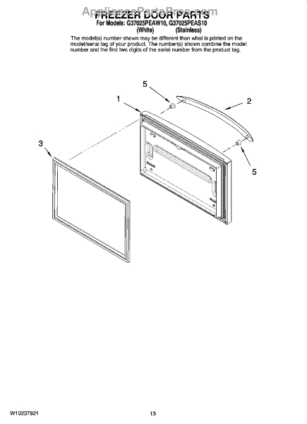 The Freezer Door Gasket is an OEM part for Whirlpool refrigerators. This gasket forms a tight seal around the freezer door, preventing warm air from entering and cold air from escaping, thus maintaining the optimal temperature inside the freezer.