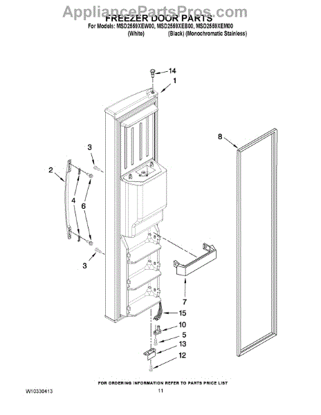 The Freezer Door Gasket is an OEM replacement part for Whirlpool refrigerators. It creates a tight insulating seal around the perimeter of the freezer door opening. The gasket helps maintain consistent sub-freezing temperatures inside by preventing cold air loss. Causes relate to natural compression fatigue over time, cracks developing with use, or accidental slicing/tears from sharp edges within the freezer. Symptoms of a compromised gasket include: