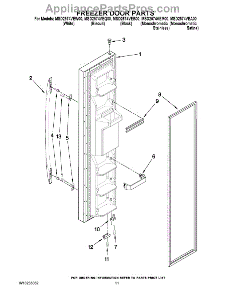 The Freezer Door Gasket is an OEM replacement part for Whirlpool refrigerators. It creates a tight insulating seal around the perimeter of the freezer door opening. The gasket helps maintain consistent sub-freezing temperatures inside by preventing cold air loss. Causes relate to natural compression fatigue over time, cracks developing with use, or accidental slicing/tears from sharp edges within the freezer. Symptoms of a compromised gasket include: