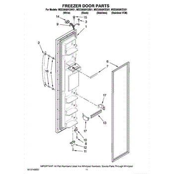 The Freezer Door Gasket is an OEM replacement part for Whirlpool refrigerators. It creates a tight insulating seal around the perimeter of the freezer door opening. The gasket helps maintain consistent sub-freezing temperatures inside by preventing cold air loss. Causes relate to natural compression fatigue over time, cracks developing with use, or accidental slicing/tears from sharp edges within the freezer. Symptoms of a compromised gasket include: