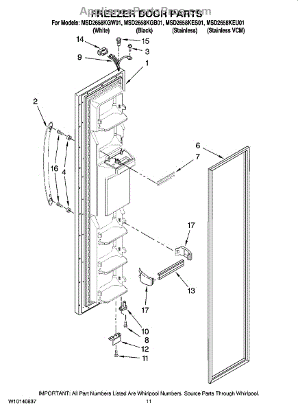 Parts for Maytag MSD2658KGW01: 07 - Freezer Door Parts