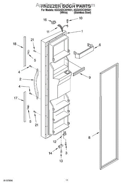 The Freezer Door Gasket is an OEM replacement part for Whirlpool refrigerators. It creates a tight insulating seal around the perimeter of the freezer door opening. The gasket helps maintain consistent sub-freezing temperatures inside by preventing cold air loss. Causes relate to natural compression fatigue over time, cracks developing with use, or accidental slicing/tears from sharp edges within the freezer. Symptoms of a compromised gasket include: