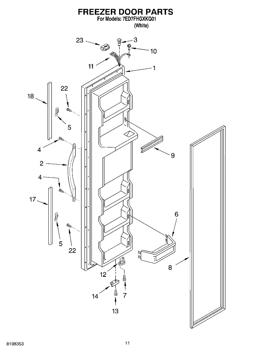Creates an airtight seal around your freezer door to maintain consistent temperatures and prevent cold air loss. Replace if torn, cracked, or loose.