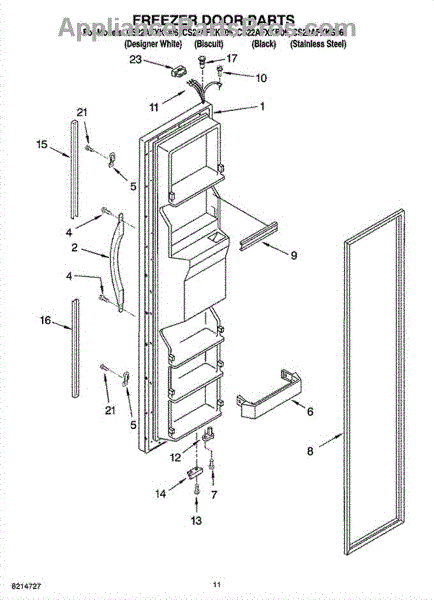 Parts for Whirlpool CS22AFXKB06: 07 - Freezer Door Parts