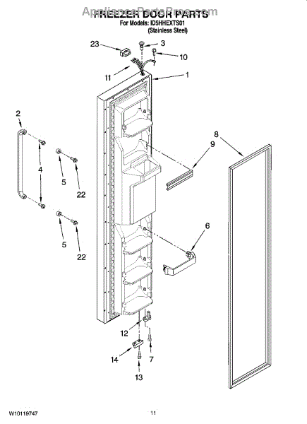 Causes of a bad freezer door gasket can include cracking or deterioration from repeated compression and expansion during opening and closing of the freezer door over time. Food debris or moisture trapped against the gasket rim can also damage the sealing integrity.