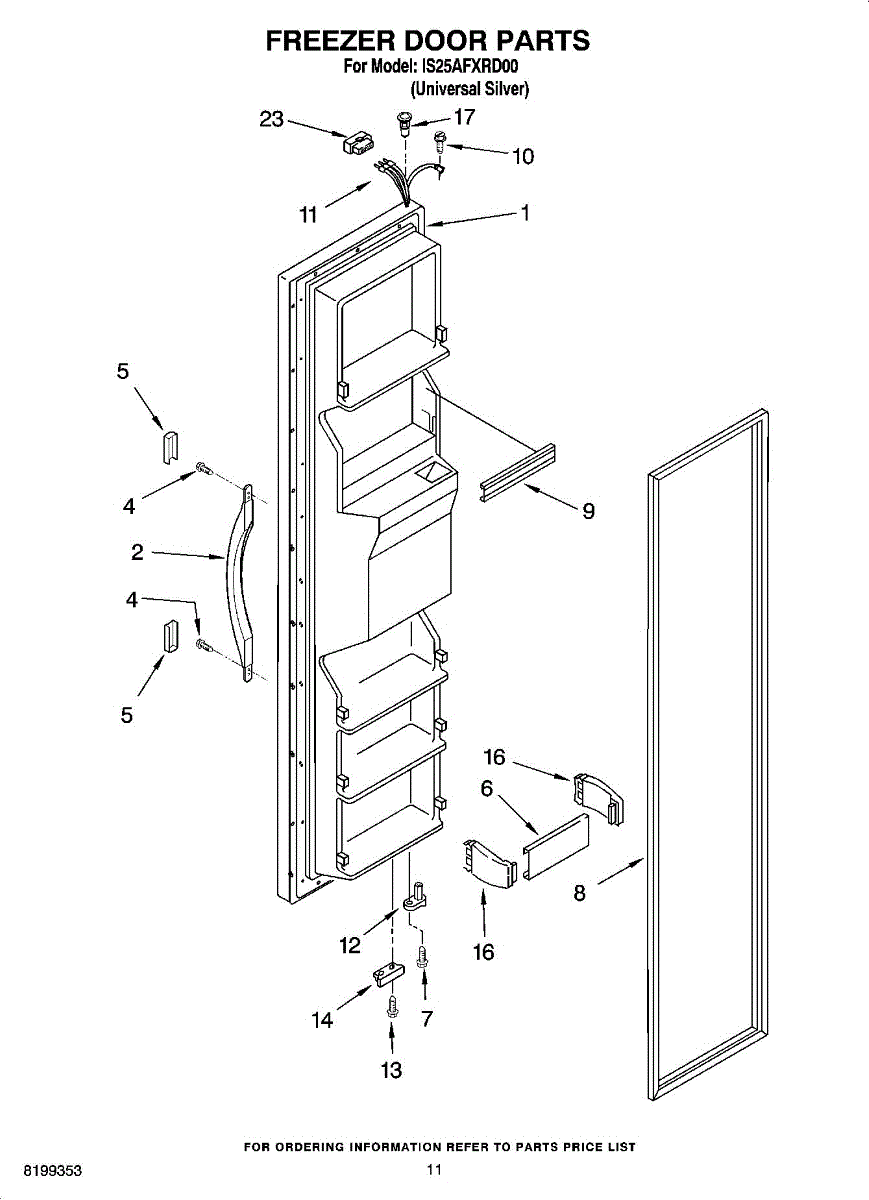 The Freezer Door Gasket is an OEM part for Whirlpool side-by-side and bottom-freezer refrigerators. As the seal that encloses cold air inside the freezer compartment, this gasket is critical for maintaining proper freezing temperatures.