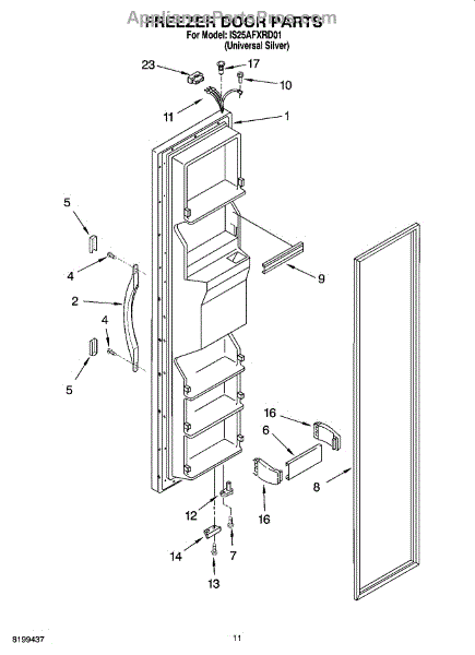 The Freezer Door Gasket is an OEM part for Whirlpool side-by-side and bottom-freezer refrigerators. As the seal that encloses cold air inside the freezer compartment, this gasket is critical for maintaining proper freezing temperatures.