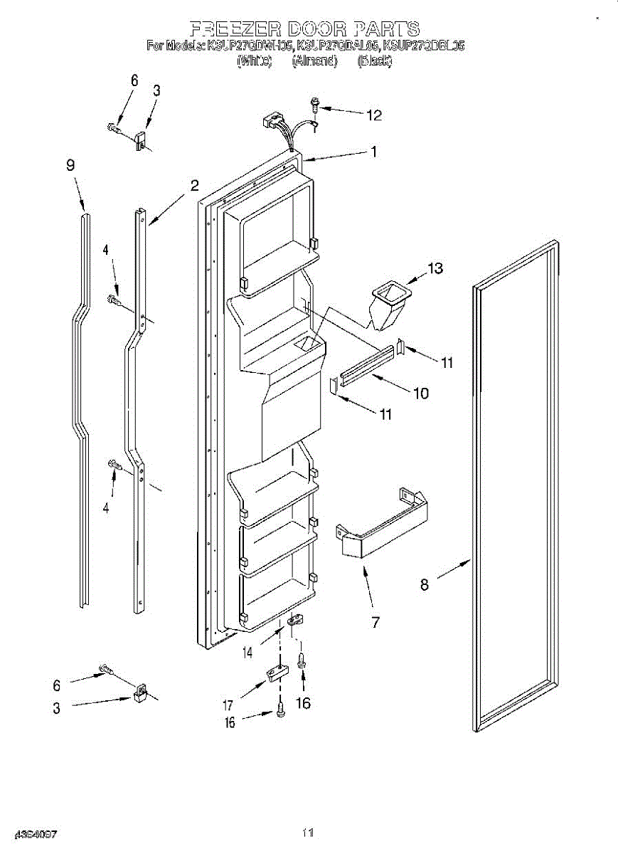 The Freezer Door Gasket is an OEM part for Whirlpool side-by-side and bottom-freezer refrigerators. As the seal that encloses cold air inside the freezer compartment, this gasket is critical for maintaining proper freezing temperatures.