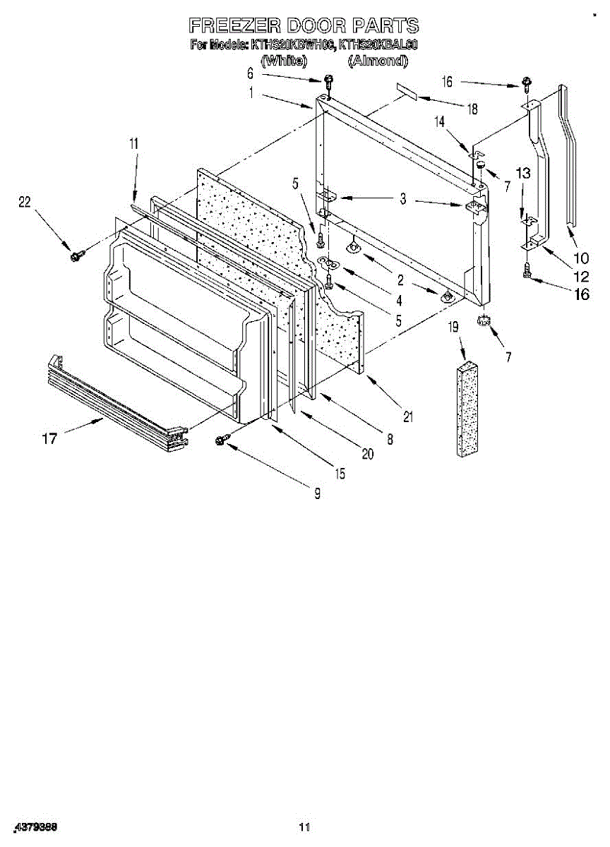 Parts for Kitchenaid KTHS20KBAL00: 07 - Freezer Door Parts