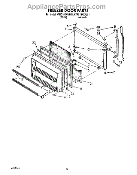 Parts for Kitchenaid KTRC18KXWH01: 07 - Freezer Door Parts