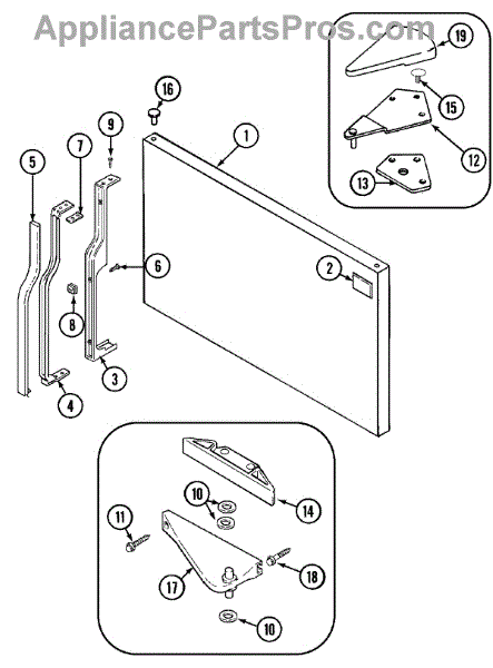 Mounting screw secures panels, brackets, and trim on refrigerators and washers. Replace when fasteners are missing, loose, stripped, or damaged.