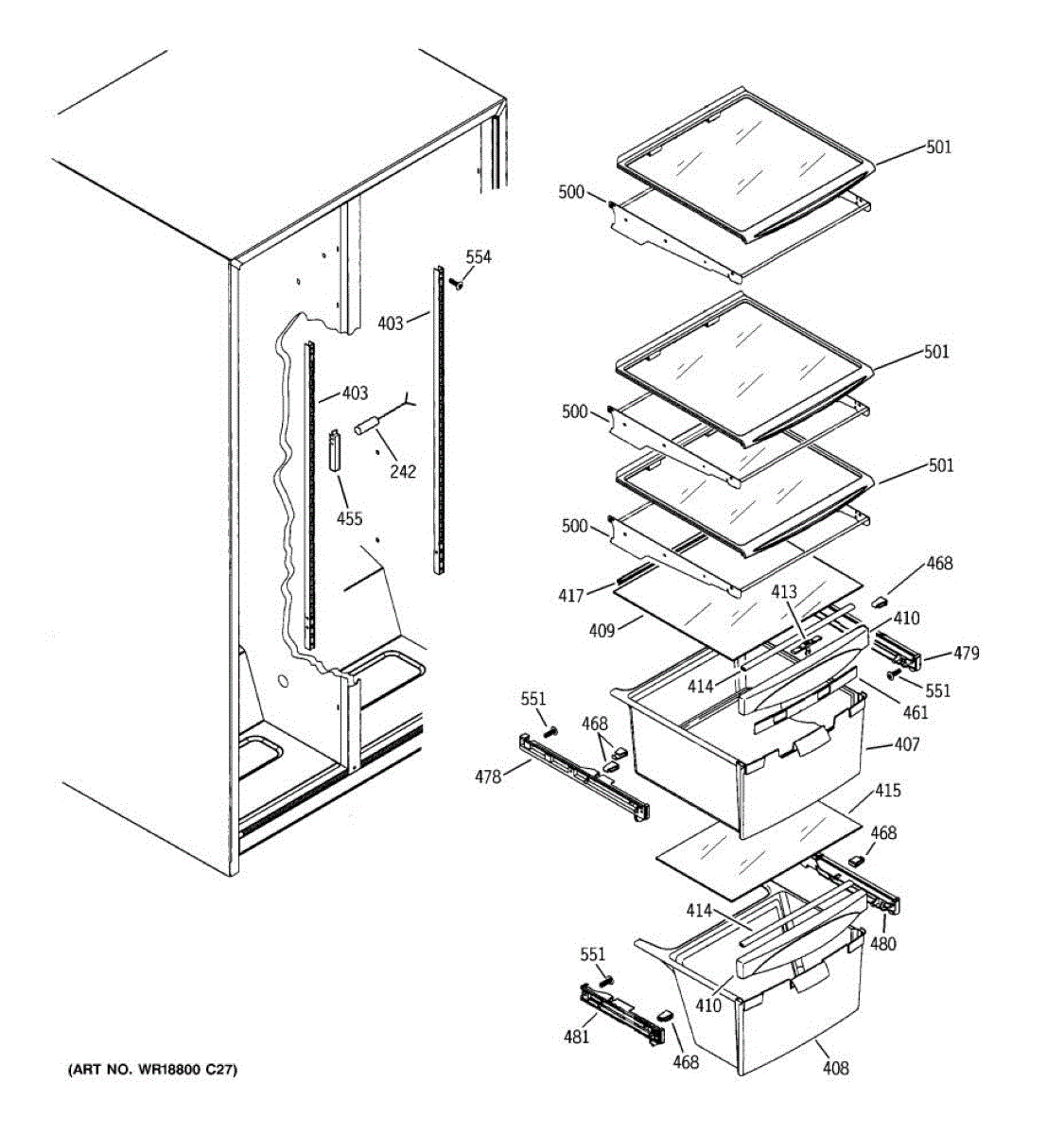 The Slide Assembly RH is an OEM replacement part for GE side-by-side refrigerators. As a replaceable sub-assembly, it restores smooth extension of plastic vegetable/multi-purpose slides on the right interior. The slide measures approximately 16 inches.