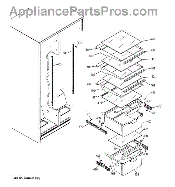 Shelf track for refrigerator. Guides and supports adjustable shelves, allowing smooth sliding movement. Replace if cracked, broken, or worn smooth.