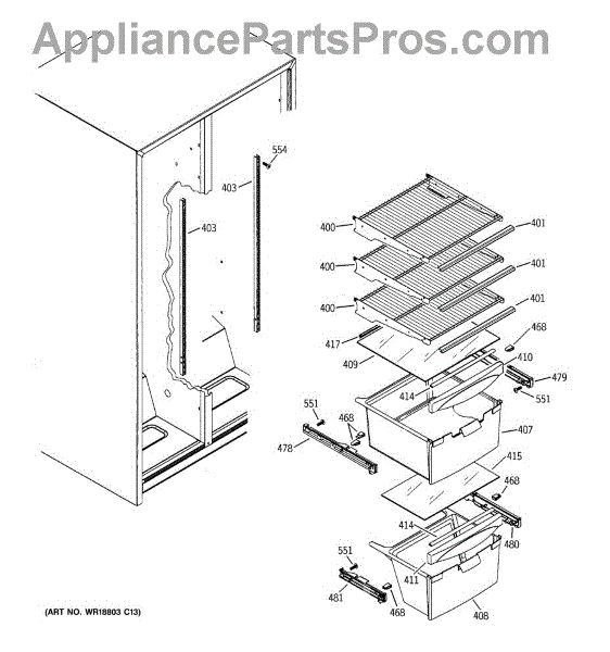 Parts for Ge RSG20DDPHFWW: 07 - Fresh Food Shelves Parts