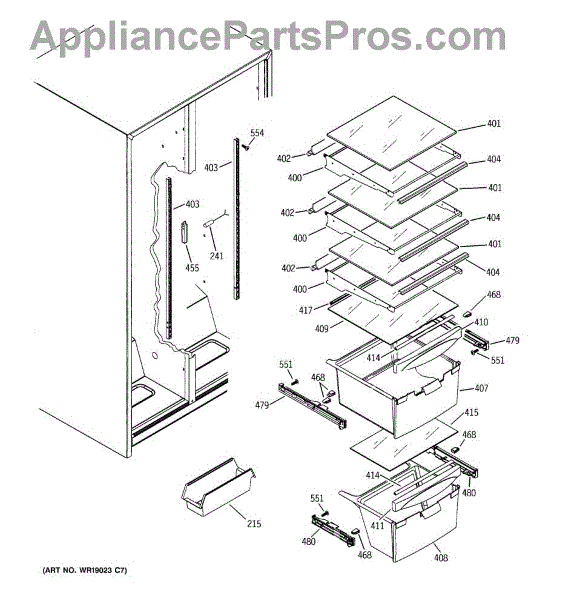 Parts for Ge RSG20IDMDFWH: 07 - Fresh Food Shelves Parts