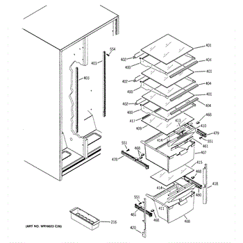 The Slide Assembly RH is an OEM replacement part for GE side-by-side refrigerators. As a replaceable sub-assembly, it restores smooth extension of plastic vegetable/multi-purpose slides on the right interior. The slide measures approximately 16 inches.