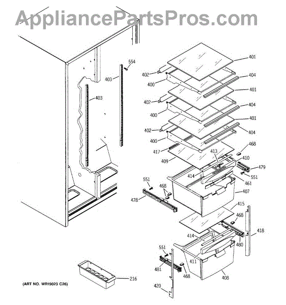 The Slide Assembly RH is an OEM replacement part for GE side-by-side refrigerators. As a replaceable sub-assembly, it restores smooth extension of plastic vegetable/multi-purpose slides on the right interior. The slide measures approximately 16 inches.