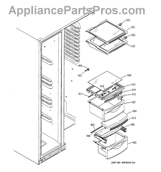 The Drawer Cover is an OEM replacement part for select GE refrigerator vegetable and deli drawers. It protects stored contents from dehydration, contaminants and prolonged illumination while keeping the drawers light-sealed. Proper drawer insulation optimizes food storage conditions. Causes of a bad drawer cover can include cracks and breaks from repeated drawer opening/closing stresses over time. Exposure to produce acids and moisture accelerates degradation of plastic sealing surfaces. Symptoms include: