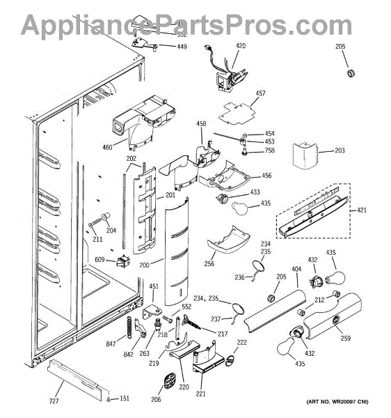 The Refrigerator Damper Assembly is an OEM part for GE refrigerators. It regulates the flow of cold air from the freezer compartment to the refrigerator, ensuring proper temperature control within the fridge.