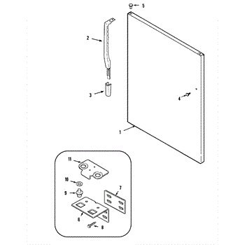 • Disconnect power; remove items from the door. Support the door and remove the upper hinge to lift the door off the lower hinge.