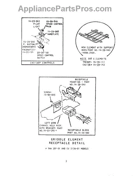 Parts for Thermador CV2136-01: 07 - Griddle Element Receptacle Parts